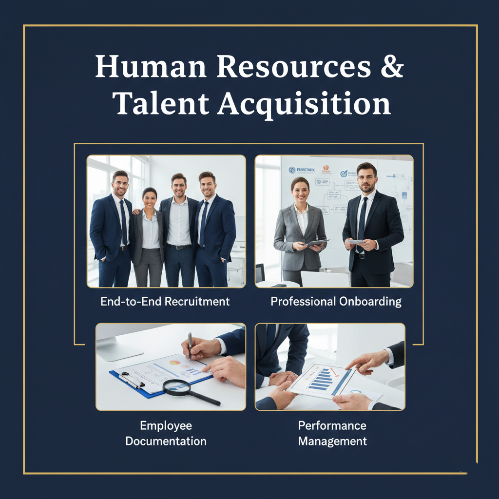 Human Resources & Recruitment (End-to end hiring, onboarding, and contracts).